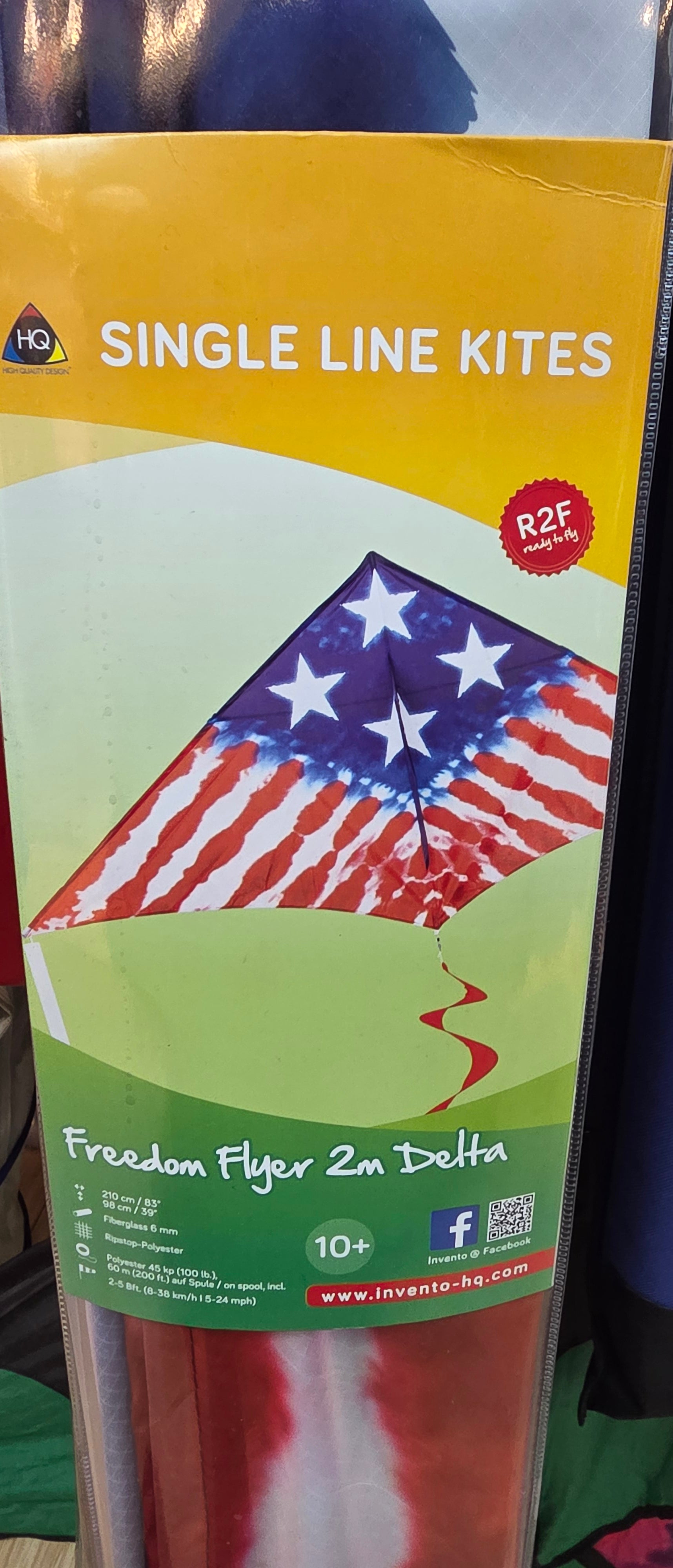 The Delta Freedom Flyer 2M is the most patriotic kite you will ever fly. This large 83' x 39" Red, White, and Blue tie-dye delta is sure to turn heads as it soars over them. Built from durable fiberglass and polyester, this kite has a very wide wind range of 5-24 mph. The Delta Freeom Flyer is the perfect kite for anyone from a beginner to advanced skill levels. Show your American spirit and fly high with the Freedom Flyer!